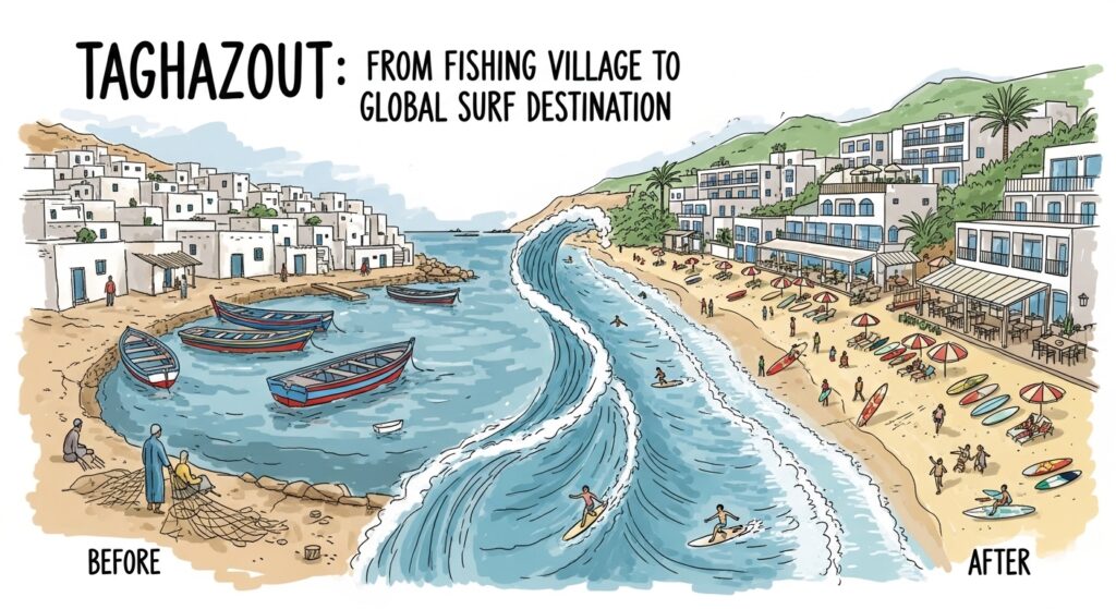 If you have been paying attention to the global surf scene lately, one name keeps surfacing in every conversation, every travel list, and every stoke-filled Instagram reel: Taghazout. This tiny Berber fishing village on Morocco’s Atlantic coast is no longer a hidden gem whispered about in lineup gossip. In 2026, the question is not whether Taghazout is becoming Africa’s surf capital — the question is whether any other destination on the continent can even compete.